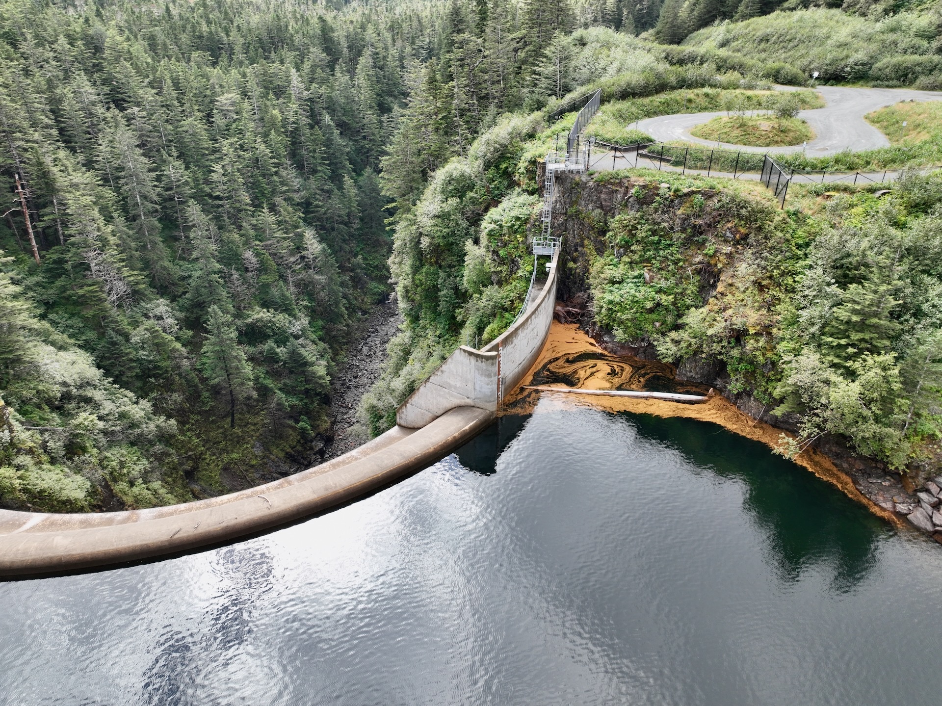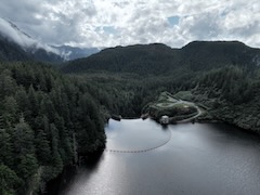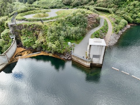 Flight over dam and follows Sawmill Creek