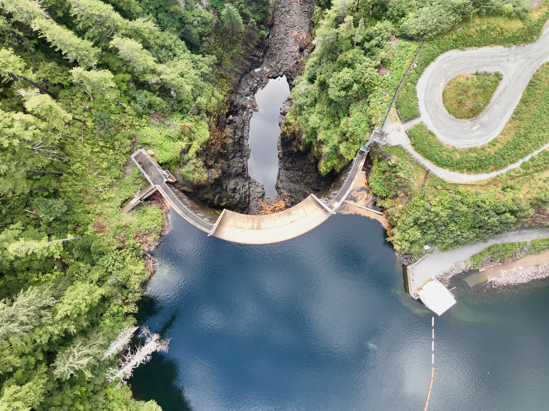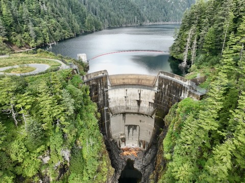 Flight up and down looking at dam